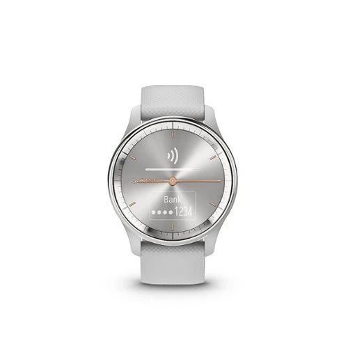 Get a perfect look around the clock. The vívomove Trend hybrid smartwatch gives you a classic analog style and essential smart features such as notifications on your compatible smartphone and Garmin Pay contactless payments. Real watch hands move to reveal a hidden touchscreen display. Live better with a full suite of health and wellness tools, including Body Battery energy monitoring, heart rate monitoring, sleep score and more (data presented is intended to be a close estimation of metrics tracked).
